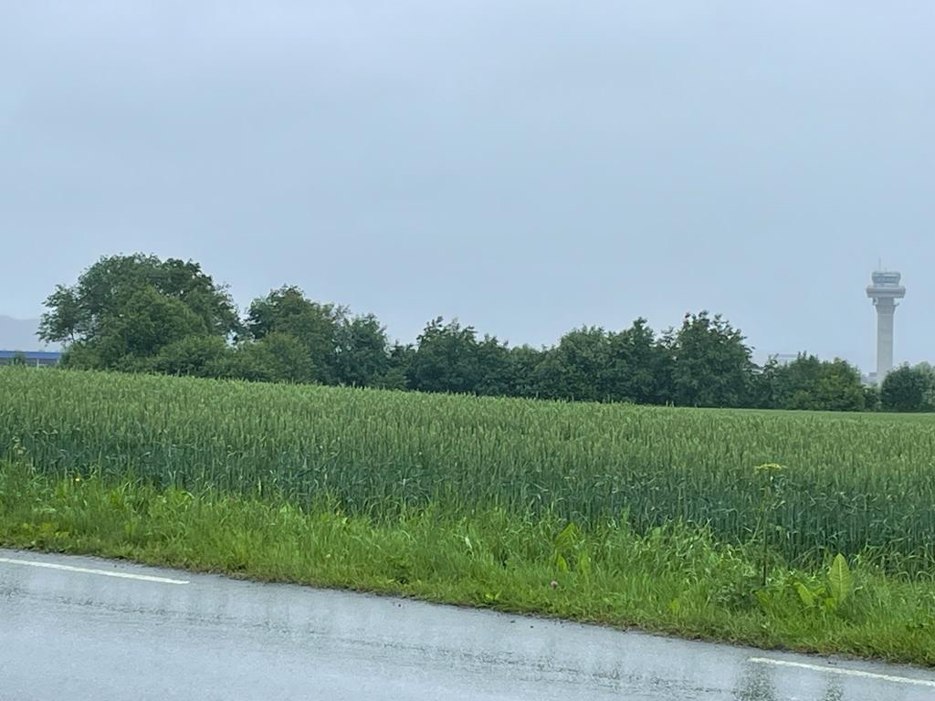 Weer de regen in. In de verte zie ik de verkeerstoren van Trondheim Airport en ik hoor weer wat vliegtuigmotoren brullen.