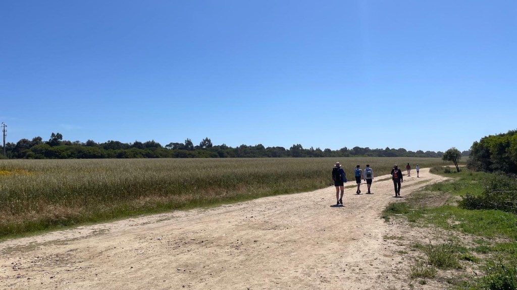 Na het strand gaan we omhoog langs een asfaltweg en komen op het hooggelegen binnenland.