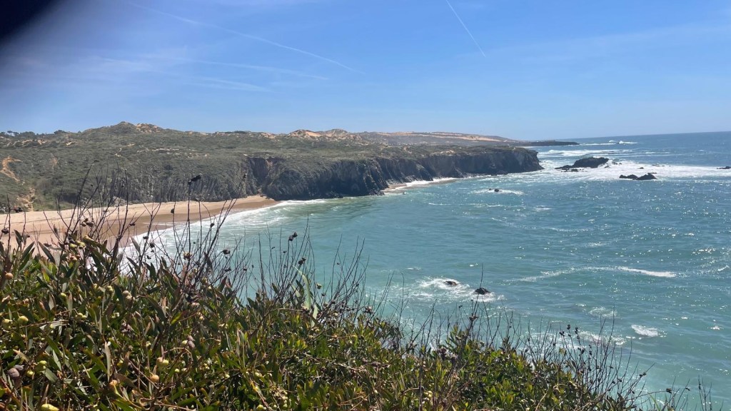Ik denk dat we een uurtje bespaard hebben met deze overtocht. Aan het strand van de Atlantische kust zijn tientallen mensen al met hun stranddag begonnen. Een enkeling in het koude water. Het is pas half 10 in de ochtend.