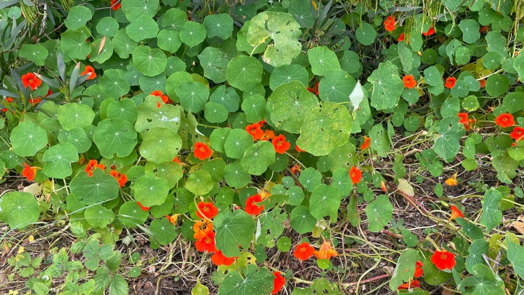 Nog steeds over de asfaltweg, zien we langs de weg veel bloemen, we hebben echt de bloemenmaand te pakken.