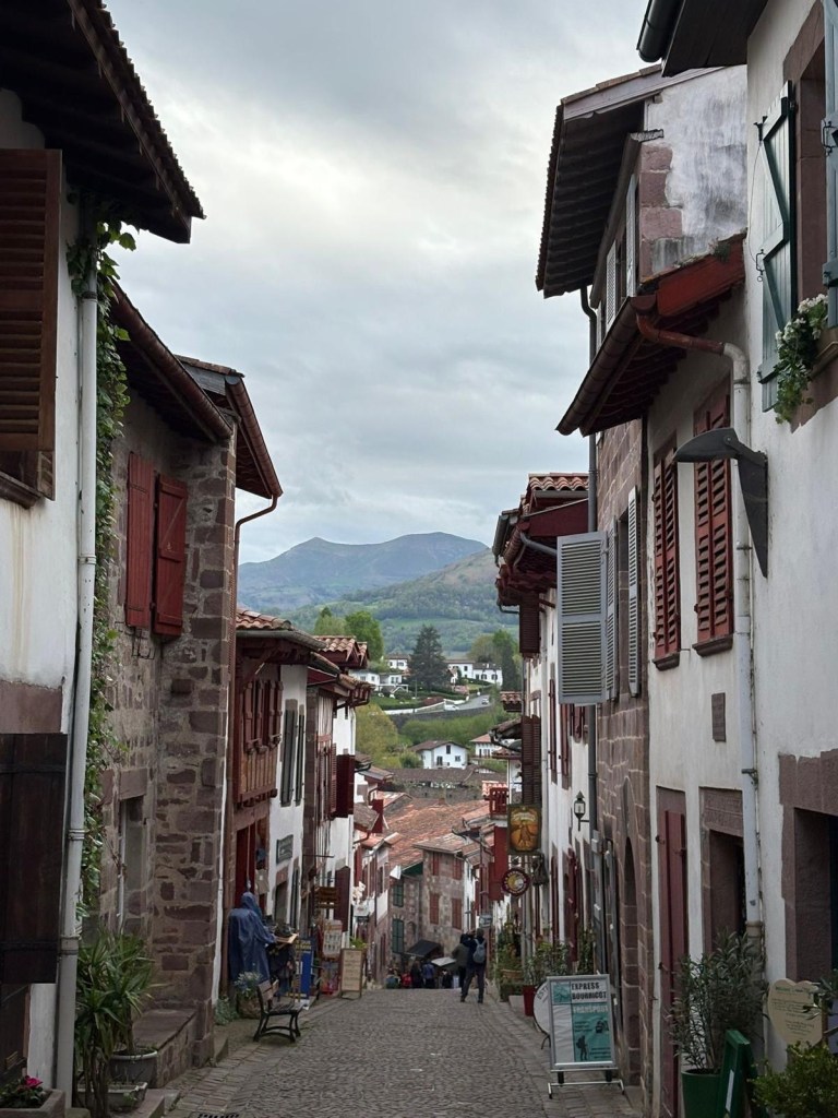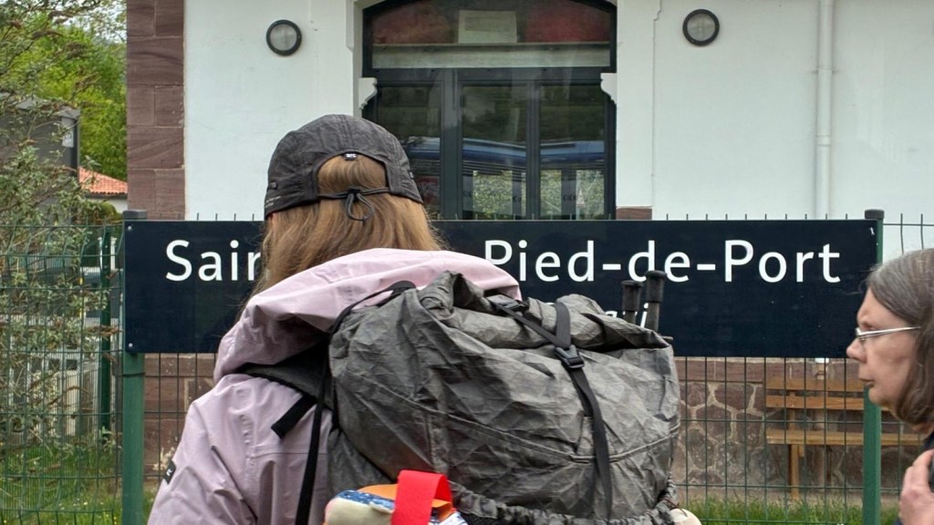 Na 1 1/2 uur vliegen, gevolgd door ritjes per bus en trein waren we om zes uur ‘s avonds in Saint-Jean-Pied-de-Port.
