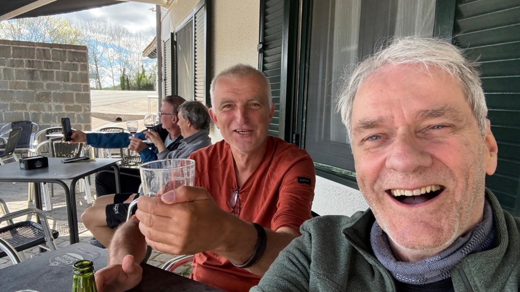 Het is woensdag ochtend 6 uur, de wekker gaat, het is nog donker. We hebben in de Gîte Compostella een kamer voor twee. Jos slaapt er tegenover; via mijn iPhone begrijp ik dat hij al om 6.15 u buiten loopt. Wij doen dat een uurtje later.