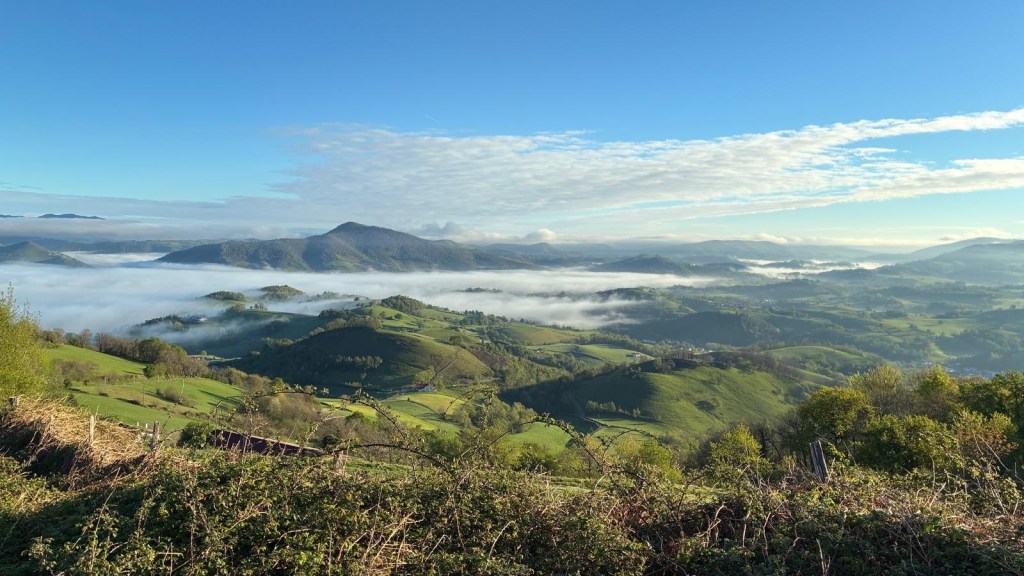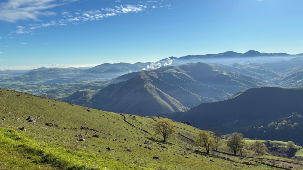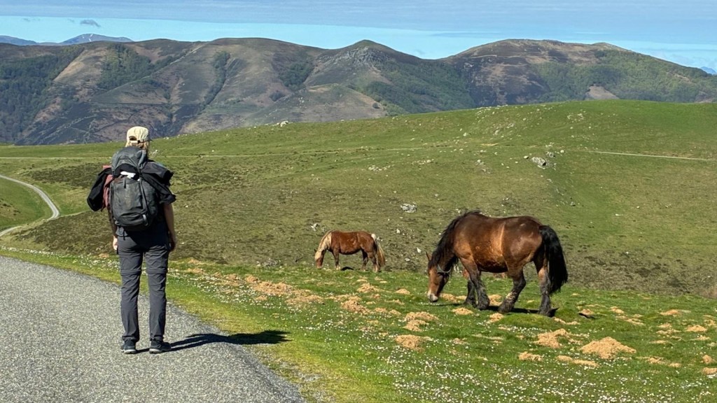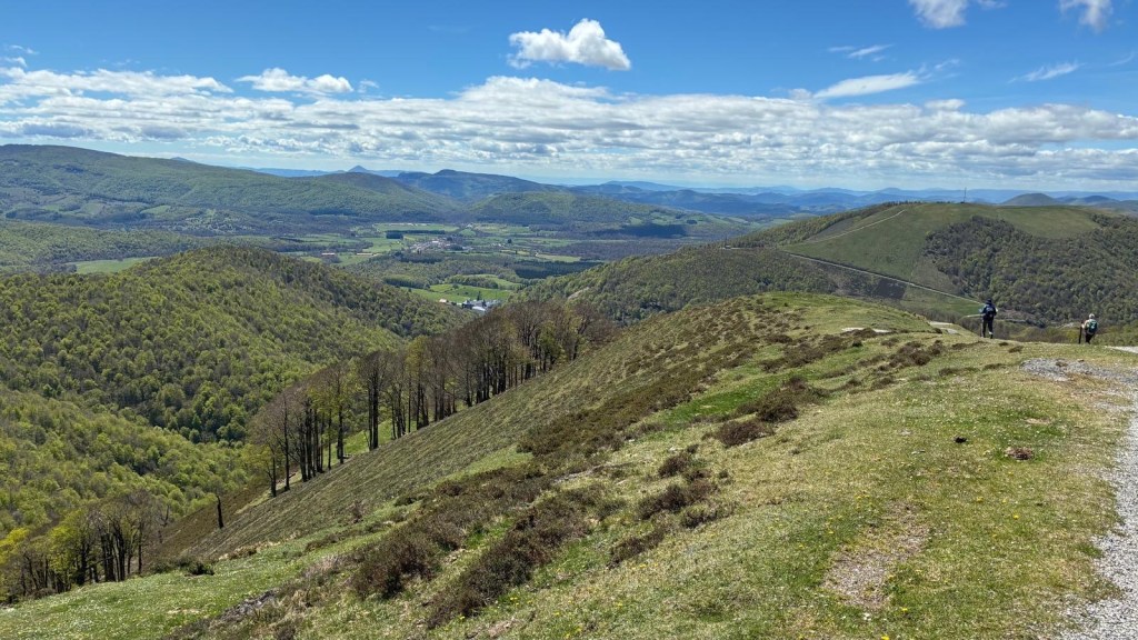 Het bleek pittiger dan aangegeven. De stijging langs natte paadjes viel tegen, het vlakke deel had best zware hellinkjes en de afdaling was langer omdat we een makkelijker, veiliger en langere weg vonden om in Roncesvalles te arriveren.