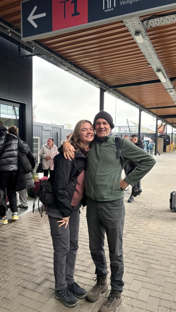 Erik, mijn wandelmaat en eindredacteur van deze blog, heeft ons al vroeg in de ochtend naar vliegveld Charleroi gebracht met de auto.