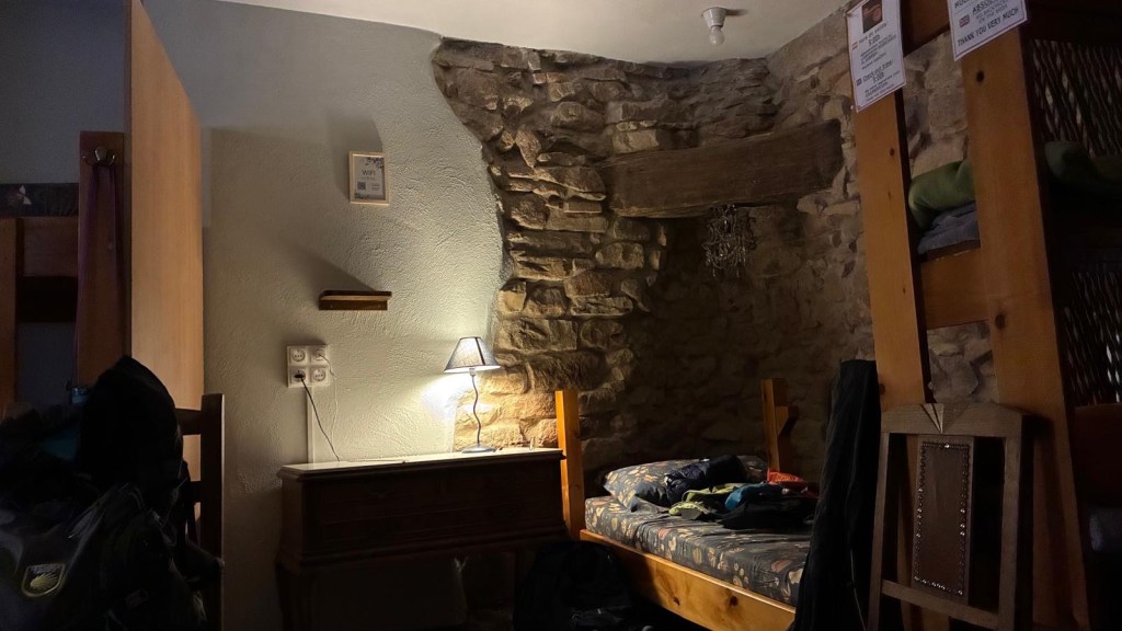 Bij Cirauqui aangekomen, moeten we flink stijgen om via smalle straatjes de herberg te bereiken. Het is een heel oud dorpje, hier zo op de heuvel. De herberg is helemaal zoals je zou willen: een gastheer die alles uitlegt, regelt en ‘s avonds helpt bij de bediening van het eten.