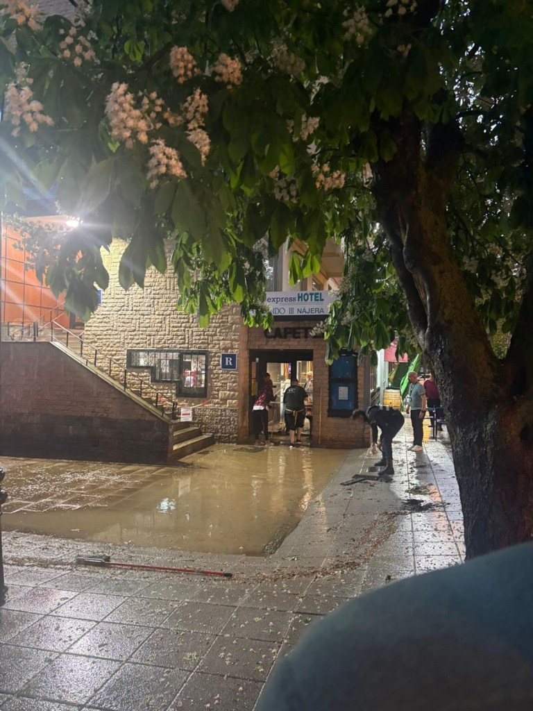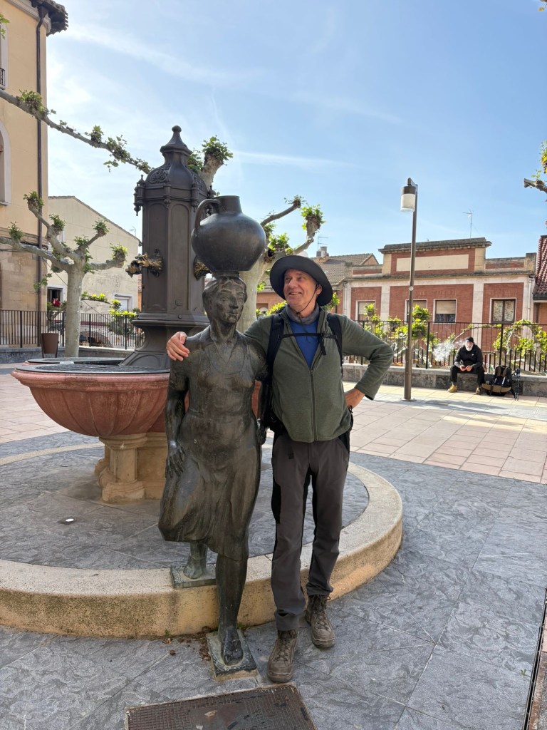 Zo arriveren we in Nájera. De balie-mevrouw is een beweeglijk type als ze achter haar pc tevoorschijn komt. Ze geeft alle info, stempels en vertelt ook dat we onze was kunnen afgeven en na twee uur droog en gevouwen op kunnen halen. Daar maken we dus gebruik van. Wat een luxe, zo voelt het.