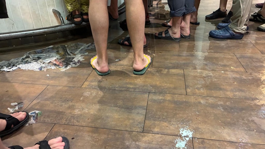 Langzaam krijgen we ook binnen natte voeten, lekkages bij de vloer. Wat een drama.