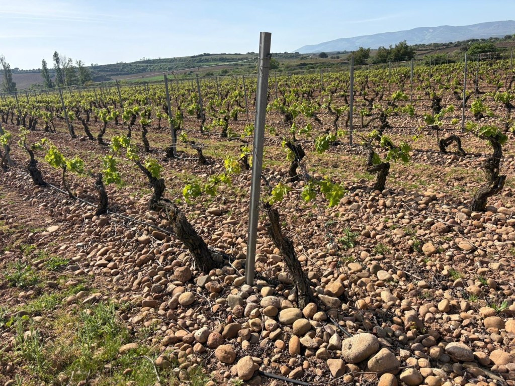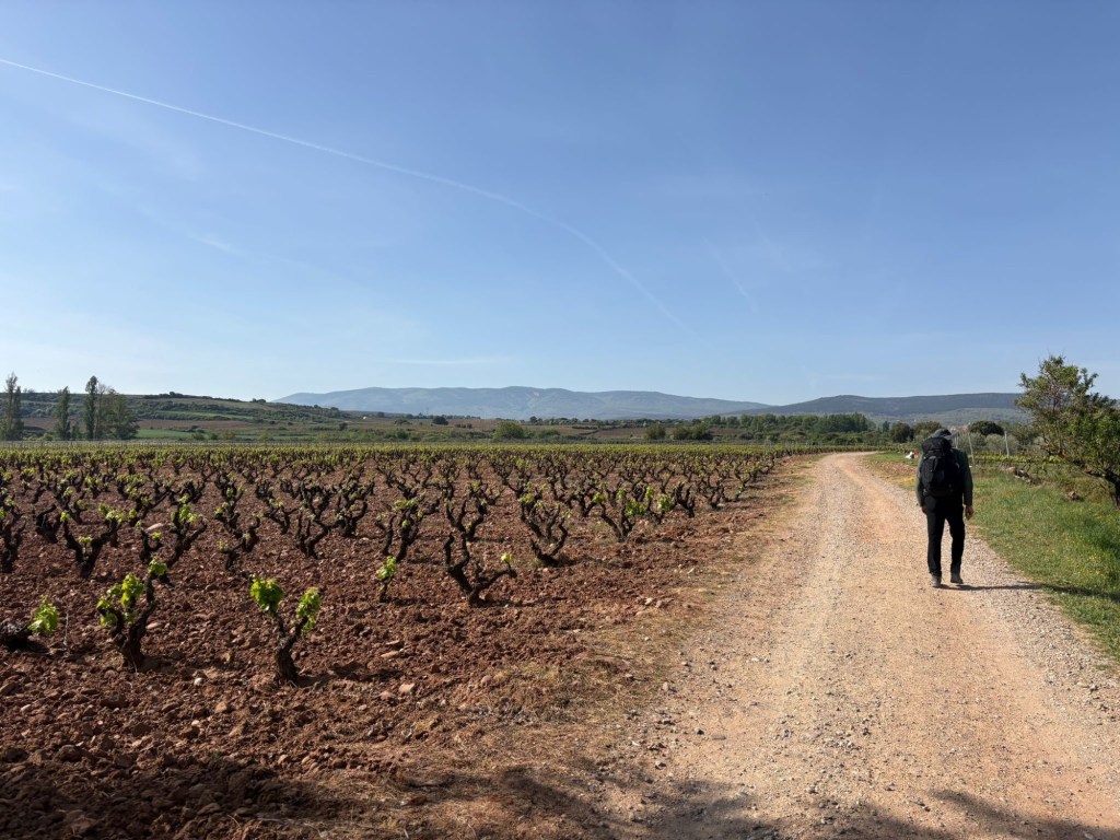 We gaan verder op de lange brede paden tussen de wijnvelden van de Rioja.