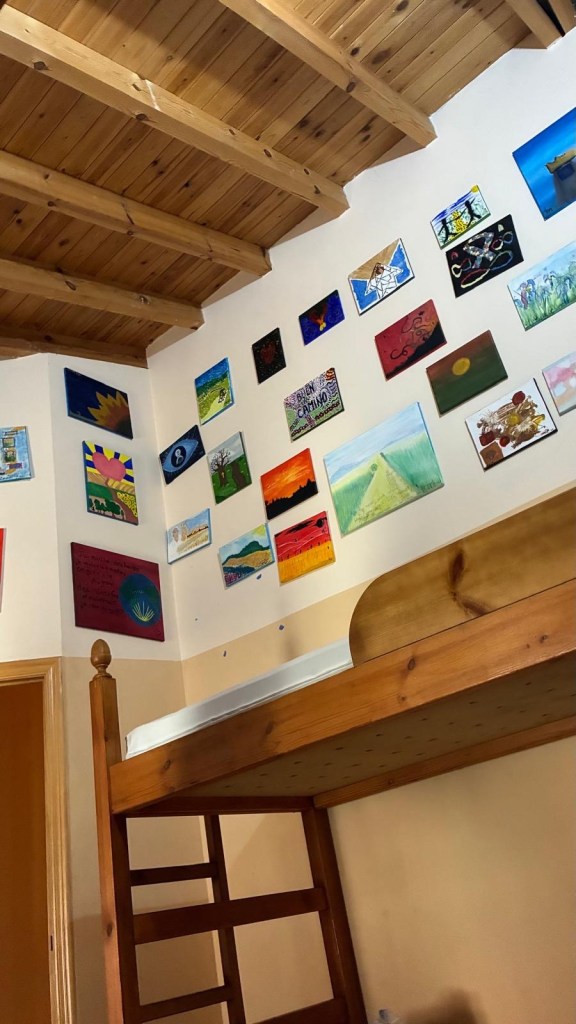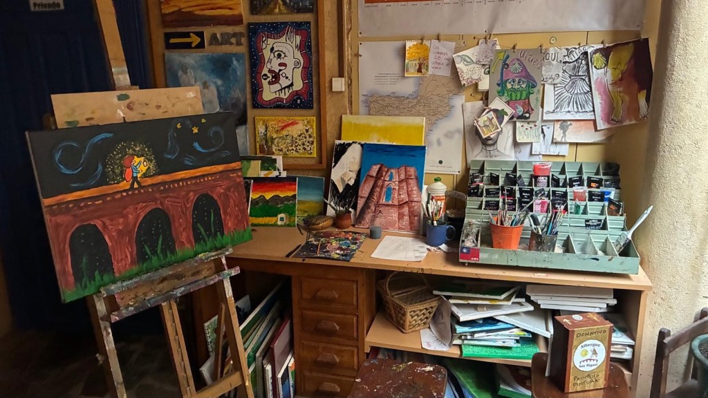 Ook een hoekje waar elke pelgrim kan gaan zitten om zo’n kunstwerkje te maken.