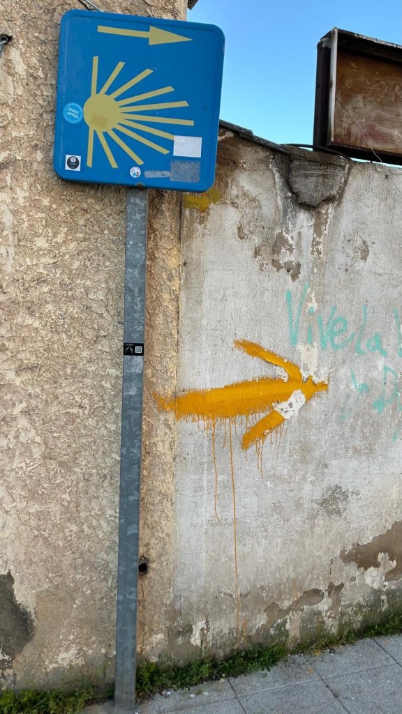 Erg lekker en gezellig met Italianen, een Zweed, een Brit, een Tsjech, Koreanen, en nog meer. Sergio vertelde dat hij 5 jaar lang zijn dementerende vader had geholpen: eerst thuis en daarna nog in een zorgcentrum. Toen ging zijn papa dood en was hij bovendien op zijn werk ontslagen. Toen dacht hij: wat nu? De Camino lopen, was een goede beslissing, vertelde hij. Bijzondere man.
