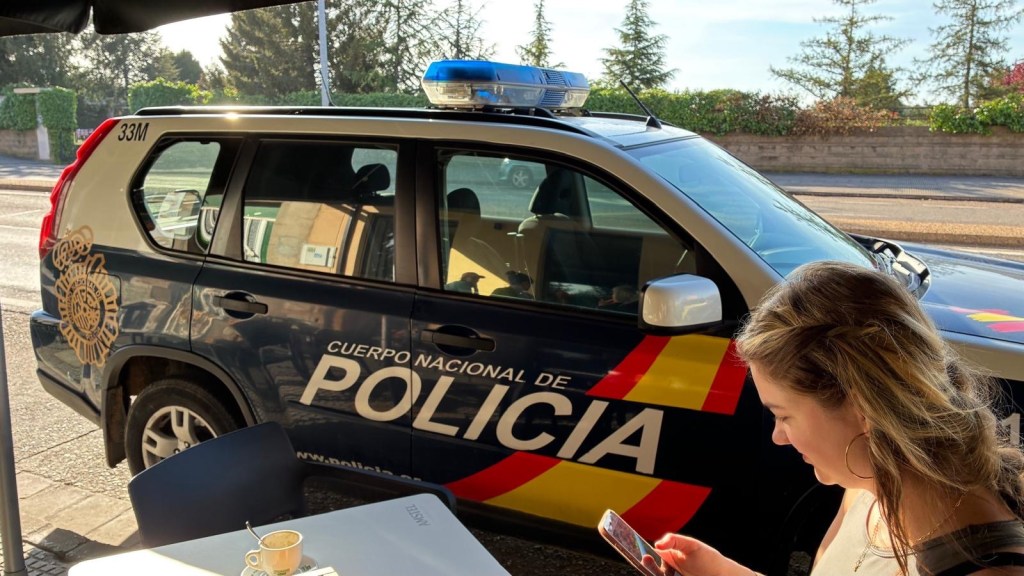 Even een eerste stop bij een café waar ook politie is, die met overdreven eer voorrang krijgt bij de koffie.