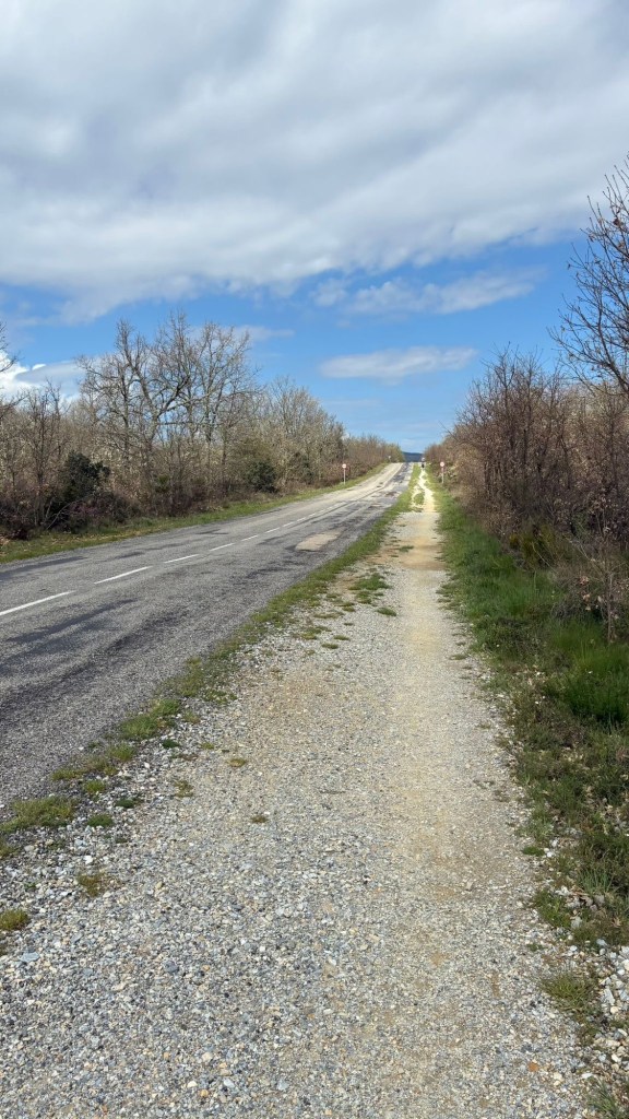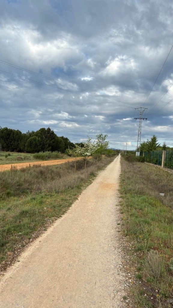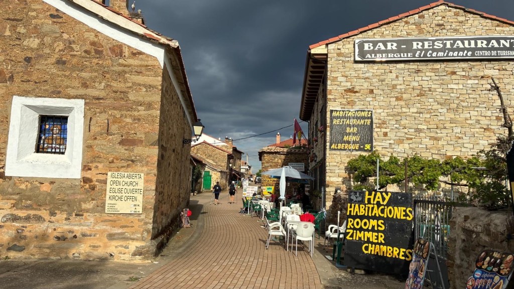Dan begint (weer) het rechte pad. Kilometers lang, totdat we in een volgend dorp aankomen dat zich echt heeft gericht op de pelgrim als toerist. Alles ademt Camino.