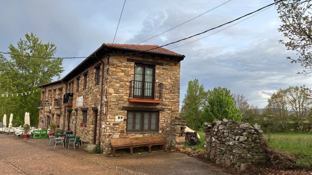 Onze bestemming is de herberg La Senda die het gebouwtje deelt met een andere herberg met restaurant waar we lunchen, het is inmiddels 13 uur.