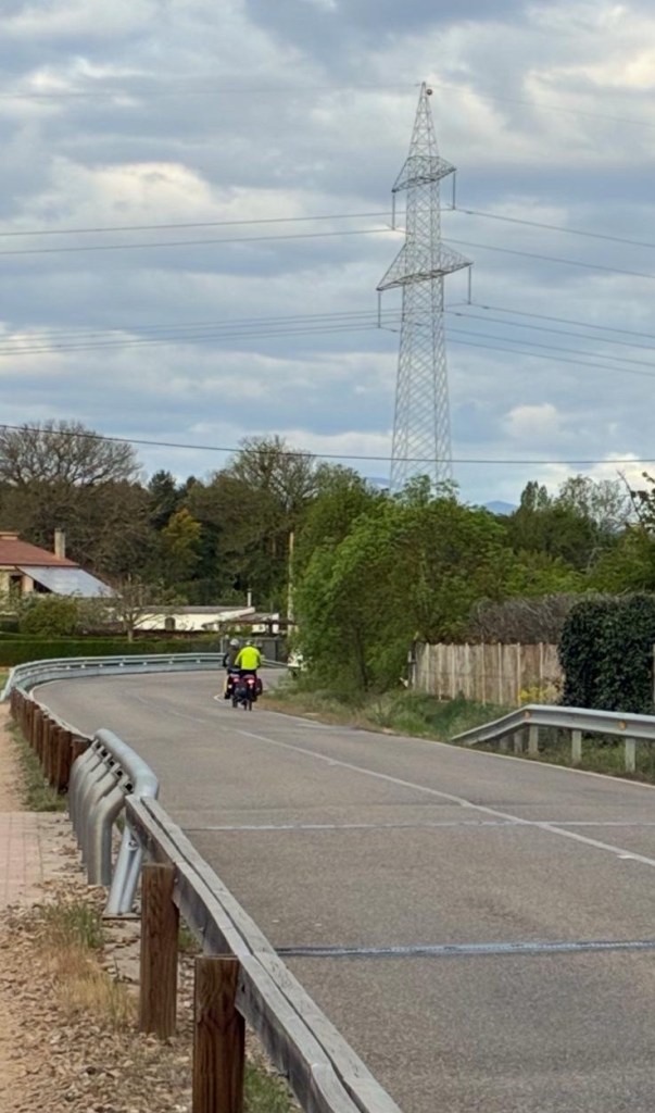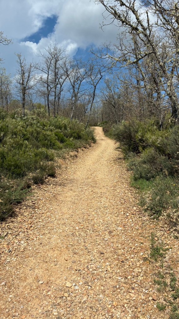 Dan een breed pad langs de autoweg. Regelmatig worden we gepasseerd door sportieve of pelgrim fietsers. Vanmorgen ontmoetten we een Nederlander die met een vriend de Camino fietste. Allereerst feliciteerden we elkaar met onze koning 👑 die vandaag jarig is. Toen vertelde hij (70+) dat ze drie zware dagen met bepakte fietsen voor de boeg hadden met stijgen en dalen: 80 km/dag was het plan. Als ze in Santiago arriveerden, zouden ze kijken wat te doen, daarna. Maar hij wist het inmiddels al: hij verlangde naar zijn vrouw, zijn kinderen, zijn huis, bed, bad… Tja.