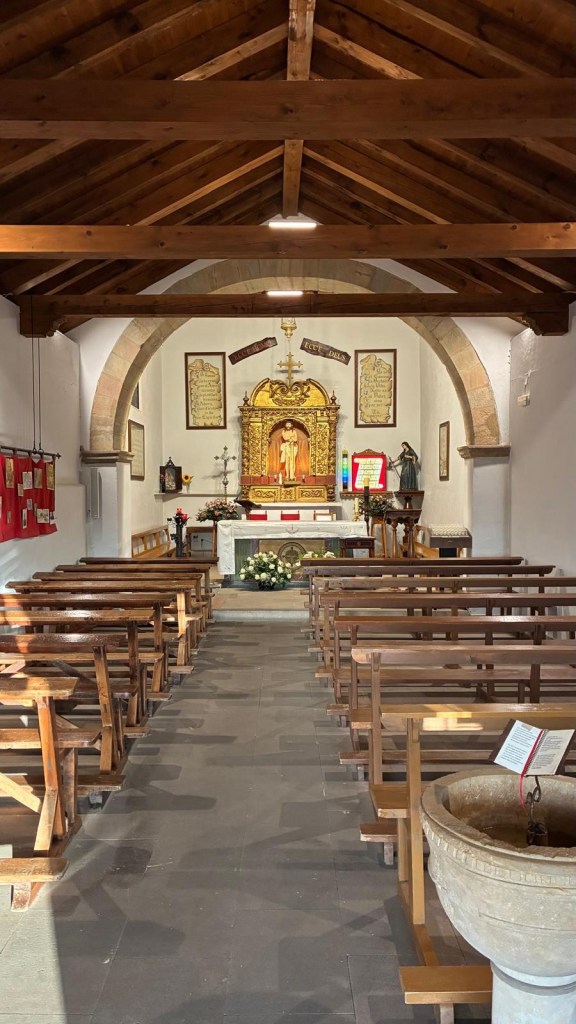 We lopen langs een kleine kapel en gaan naar binnen. Een vrijwilligster vertelt ons in het Spaans wat we zien en we krijgen een stempel in ons boekje. We bedanken haar: een heel lief klein bedeesd oud mensje.